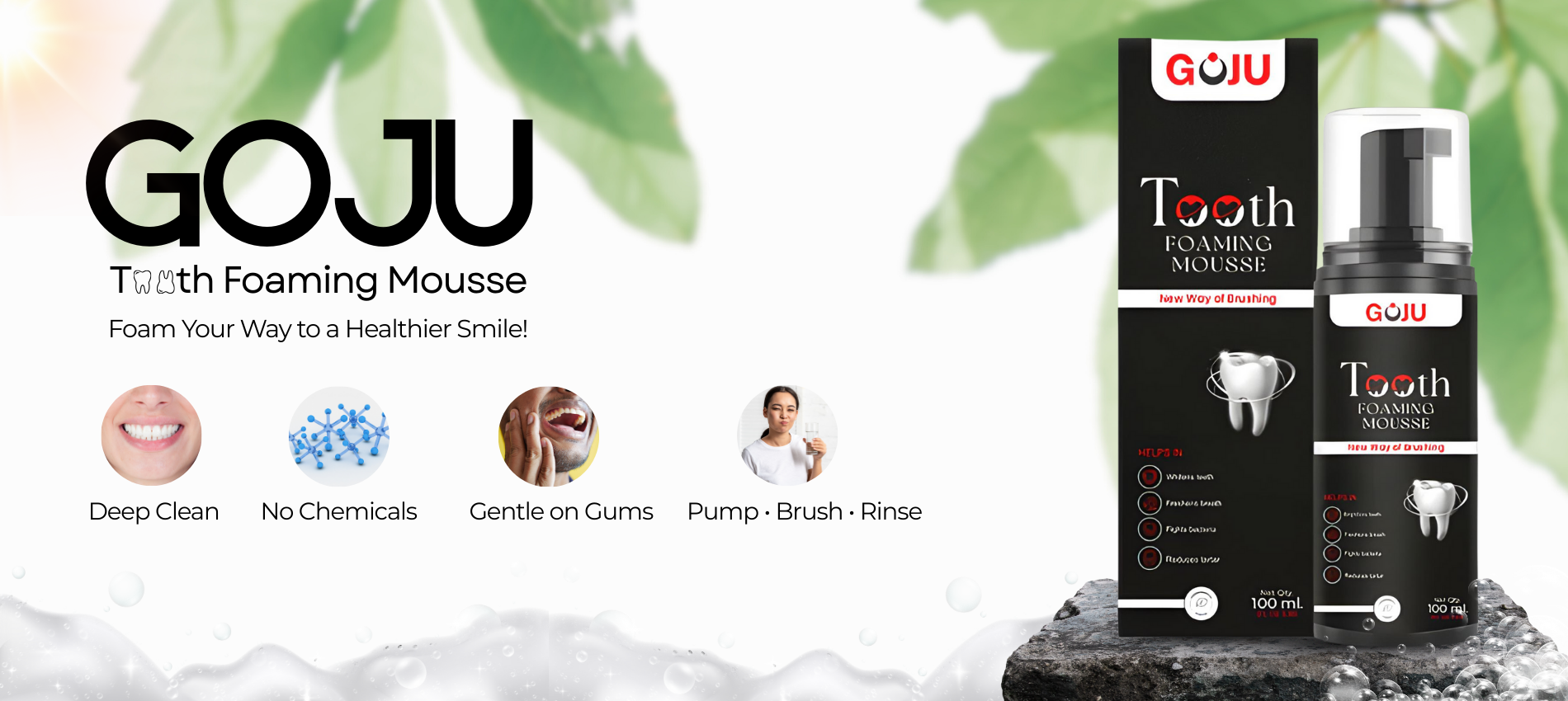 Experience the new way of brushing with Goju Tooth Foaming Mousse. Order now and revolutionize your dental care routine for a healthier, brighter smile. Love You Goju!